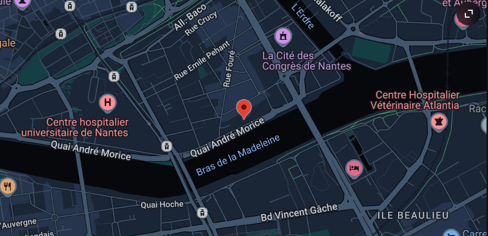 Situé entre l’arret de tramway ligne 2 et 3 Aimé-Delrue et la cité des congrès de Nantes.